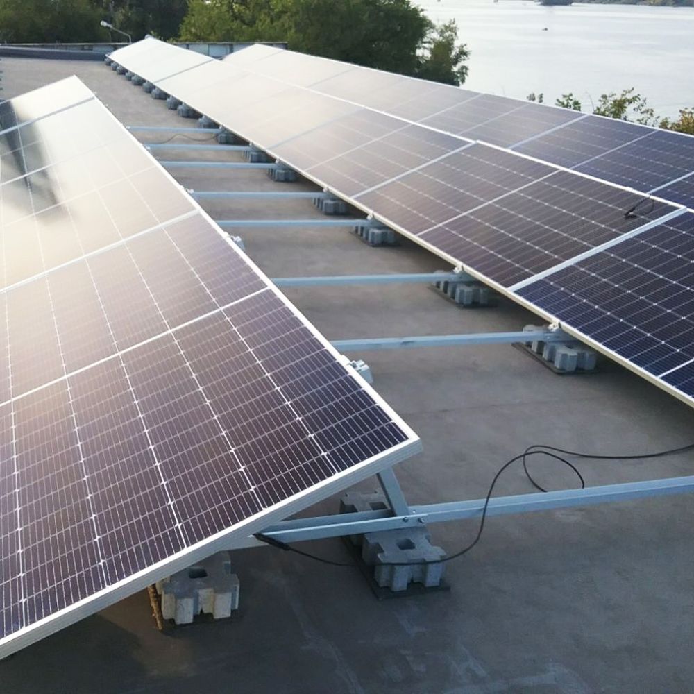 Баластова система дає змогу розмістити фотоелектричні модулі на дахах промислових, комерційних і приватних будівель, і забезпечує необхідний кут нахилу панелей для максимальної генерації. Матеріал: Анодований алюмінієвий профіль. Сплав: АД31 (6063) Т5. Антикорозійне покриття: АН15 (15 мікрон). Метиз: нержавіюча сталь А2. Під час проєктування проведено розрахунок максимальних вітрових/снігових навантажень. При правильному встановленні витримує максимальне значення вітрових/снігових навантажень у будь-якому регіоні України.