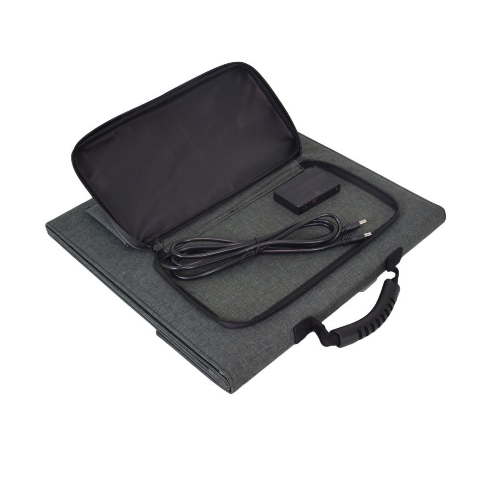 Портативна сонячна панель Full Energy SP-100 - призначена для перетворення сонячної енергії в електричну. Потужність: 100 Вт, 19~22 В. Матеріал: Монокристалічні елементи +ETFE. Вихід: DC5521+Type-C+USB+USB QC3.0. Розмір у складеному вигляді: 585×358×80 мм. Розмір у розкладеному вигляді: 1470×585×5 мм