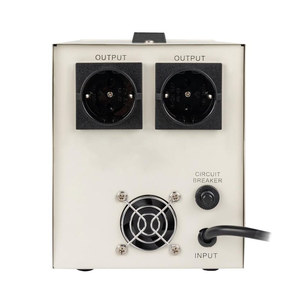 Logicpower LP-3500RD EU – однофазний релейний стабілізатор потужністю 2100 Вт із семиступеневою системою регулювання. Підтримує стабільну вихідну напругу 220 В ±10% при вхідному діапазоні від 100 до 260 В. Оснащений двома євророзетками, функцією затримки ввімкнення від 6 до 180 секунд і LED-індикацією. Корпус виготовлений із металу. Система охолодження пасивна. Тип встановлення підлоговий. Передбачений захист від перенапруги, зниженої напруги, перевантаження та короткого замикання.