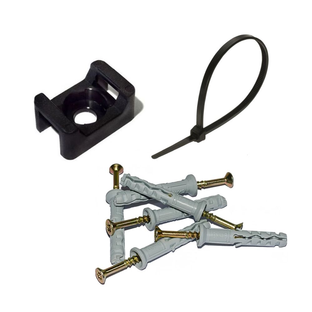 Монтажний комплект: Стяжка Relfix 4 x 250 мм (100 шт/уп) чорна + Майданчик для стяжки під дюбель 13 x 18 мм чорний (100шт) + Дюбелі швидкого монтажу 6 x 40 мм потай (100 шт/уп)