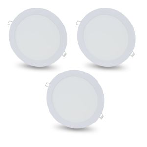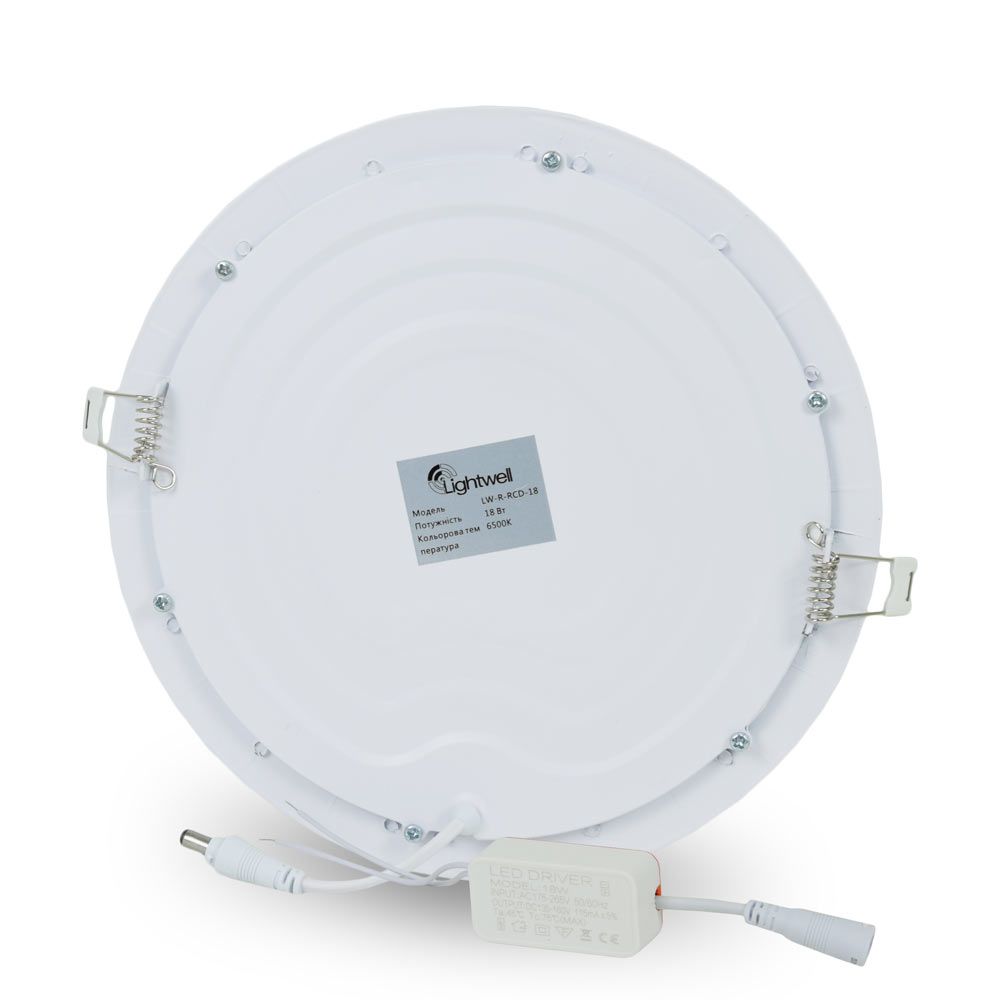 Комплект: 3 х LW-R-RCD-18. Потужність: 18 Вт. Спосіб монтажу: вбудований. Напруга живлення: AC 85-265 В. Колірна температура: 6500К. Світловий потік: 1450 люмен. Ресурс: 50 000 годин. Індекс передавання кольору, Ra (CRI): > 70. Ступінь захисту: IP20. Форма: коло. Матеріал корпусу: алюміній. Колір: білий. Розміри: ⌀225 x 23 мм. Розмір врізного отвору: ⌀205 мм.