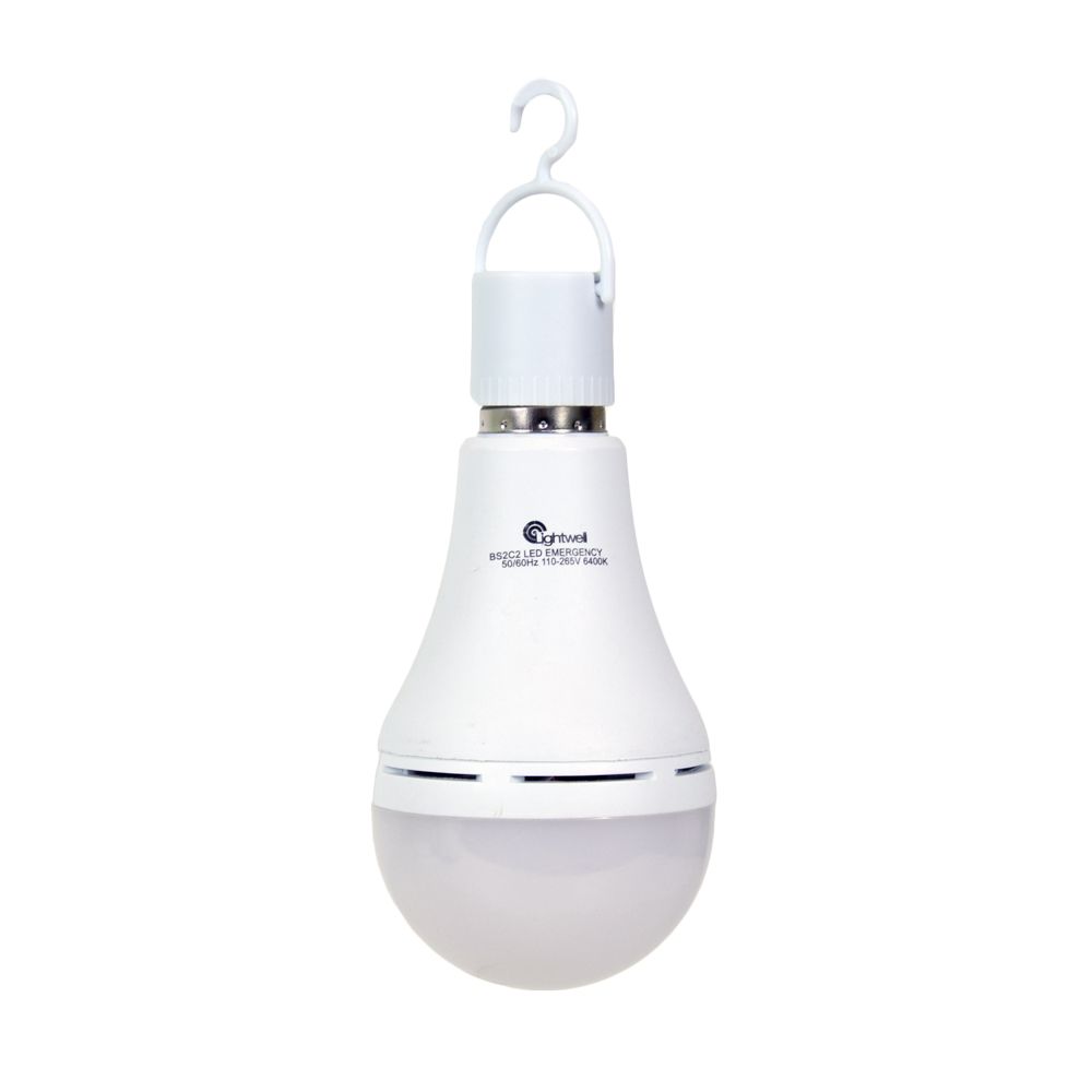 Комплект: 2 лампи LED Lightwell BS2C3 12 Вт Е27 з акумулятором портативний світлодіодний освітлювальний пристрій. Потужність: 12 Вт. Колірна температура: 6400K. Світловий потік: 960 Лм. Цоколь: Е27. Вхідна напруга: AC 220В. Час заряджання: 5-10 годин. Час аварійної роботи: близько 3-4 годин. Спосіб зарядки: заряджається під час увімкненого стану. Не є водонепроникною. У комплекті ковпачок із підвісним гачком. Можливість вмикати або вимикати лампочку під час роботи в аварійному режимі. Під час вимкнення або переривання живлення лампочка залишатиметься увімкненою.