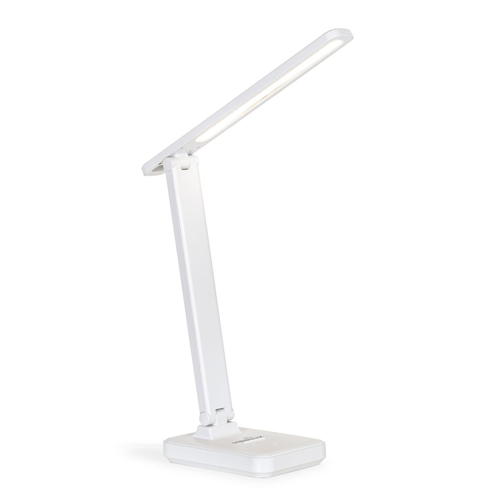Акумуляторна складна настільна лампа. Функції: дотик для регулювання колірної температури, тривале натискання для регулювання яскравості, з тримачем для мобільного телефону, складна. Ємність акумулятора: 1200 мАг. Робоча напруга: 5V/1A. Колірна температура: 3000К - 6500К. Інтенсивність освітлення: Ra≥ 80. Потужність: 4 Вт. Блок живлення: 240 В / 50Гц / 0.2 А. Довжина USB кабелю: 80 см. Матеріал: ABS-пластик