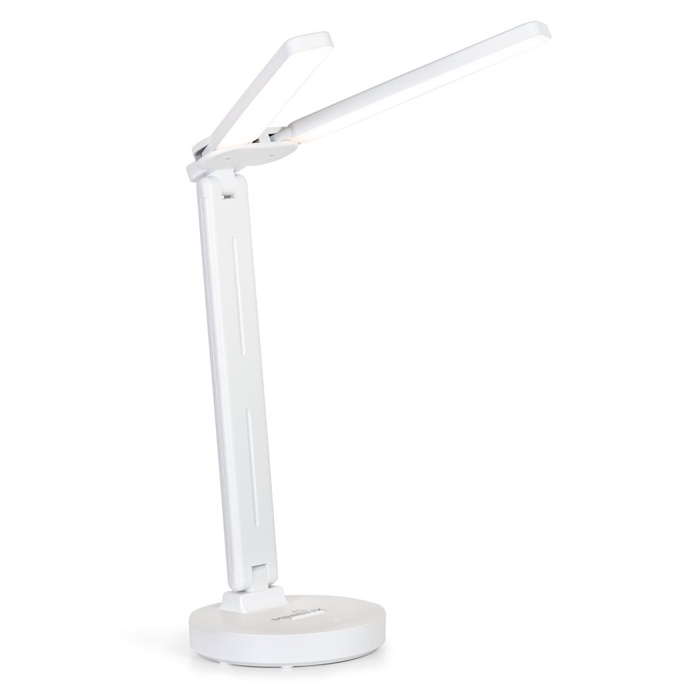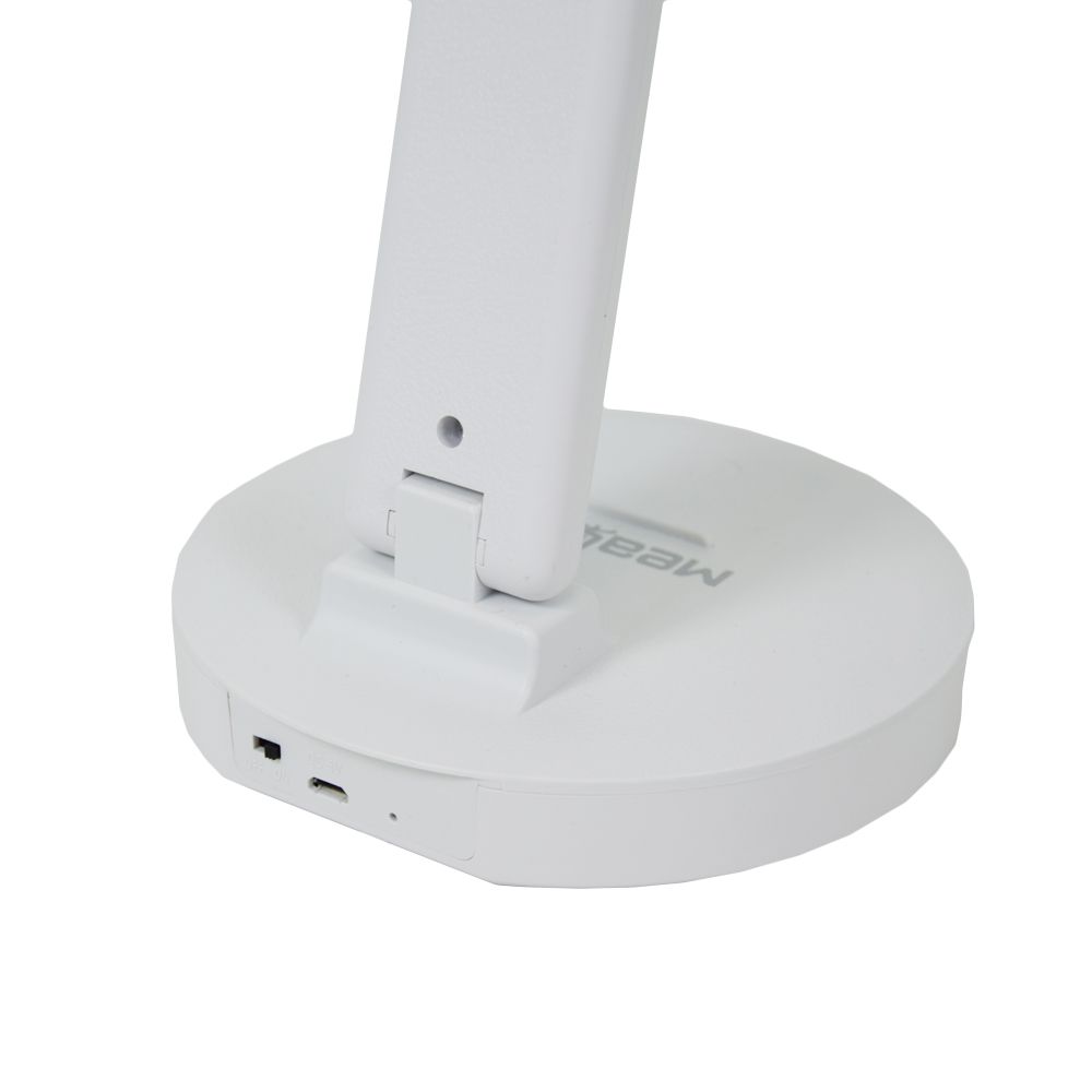 Акумуляторна складна настільна лампа. Функції: дотик для регулювання колірної температури, тривале натискання для регулювання яскравості, з тримачем для мобільного телефону, складна. Ємність акумулятора: 1200 мАг. Робоча напруга: 5V/1A. Колірна температура: 3000К - 6500К. Інтенсивність освітлення: Ra≥ 80. Потужність: 5 Вт. Блок живлення: 240 В / 50Гц / 0.2 А. Довжина USB кабелю: 80 см. Матеріал: ABS-пластик