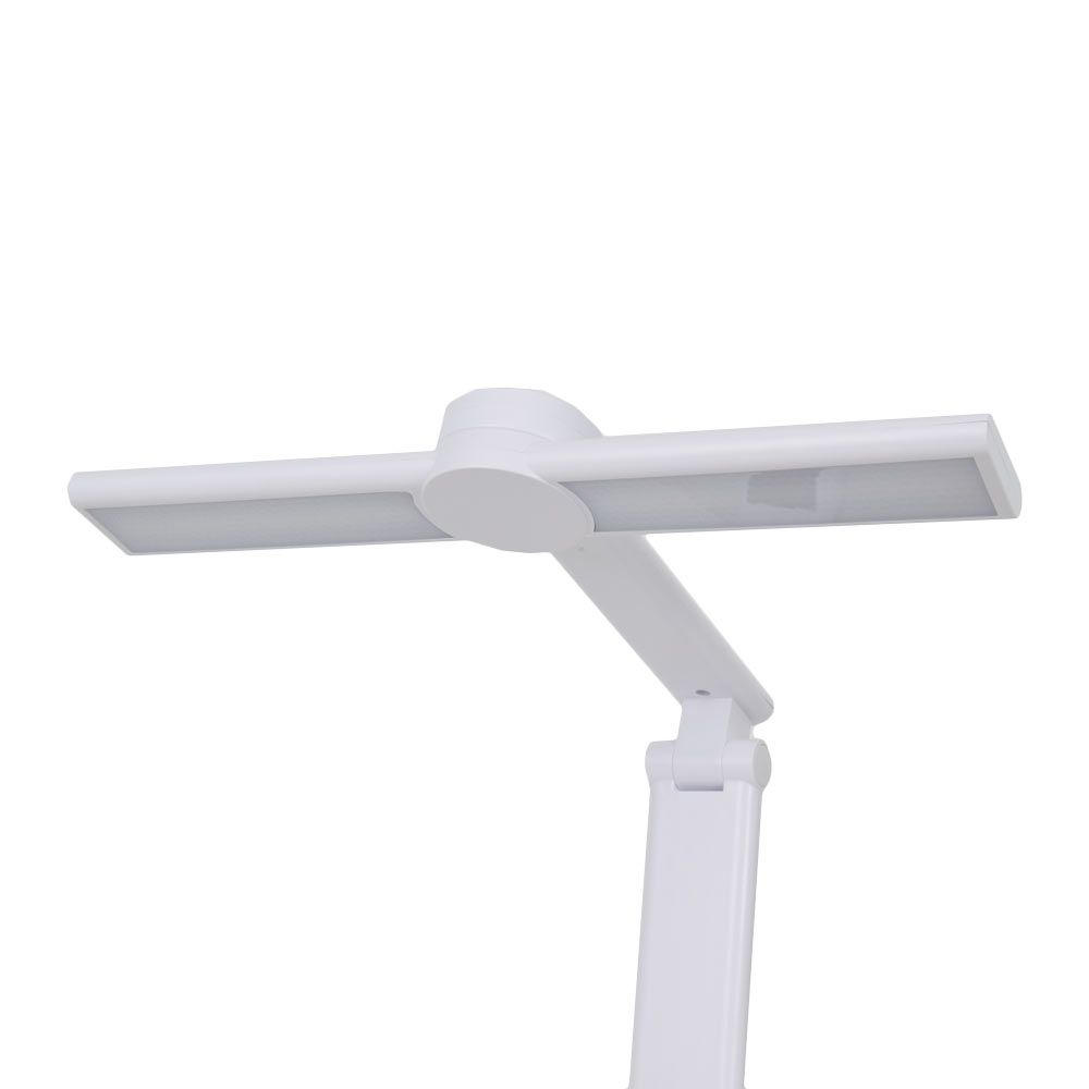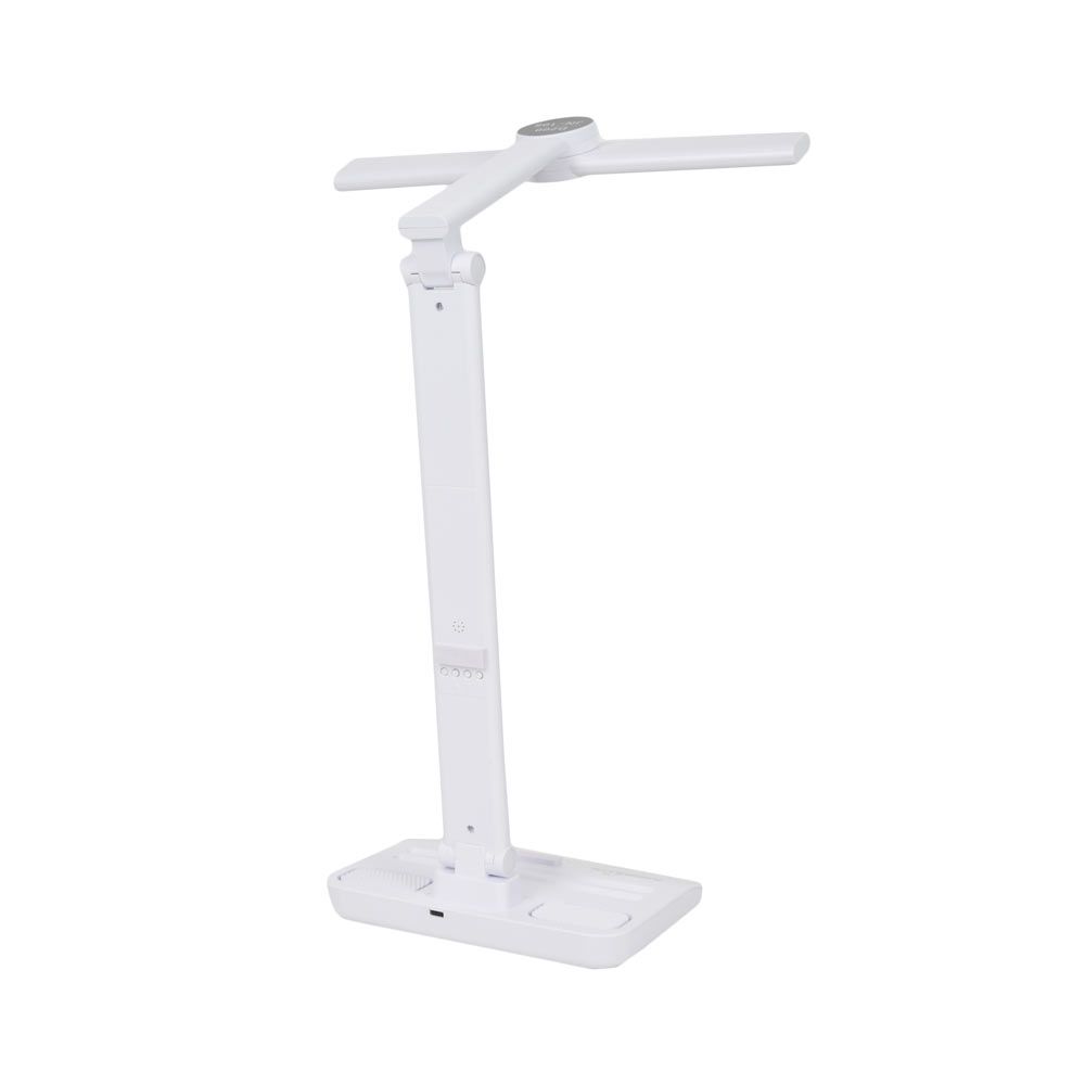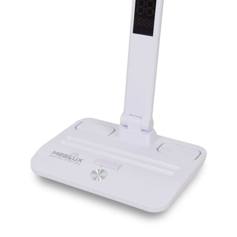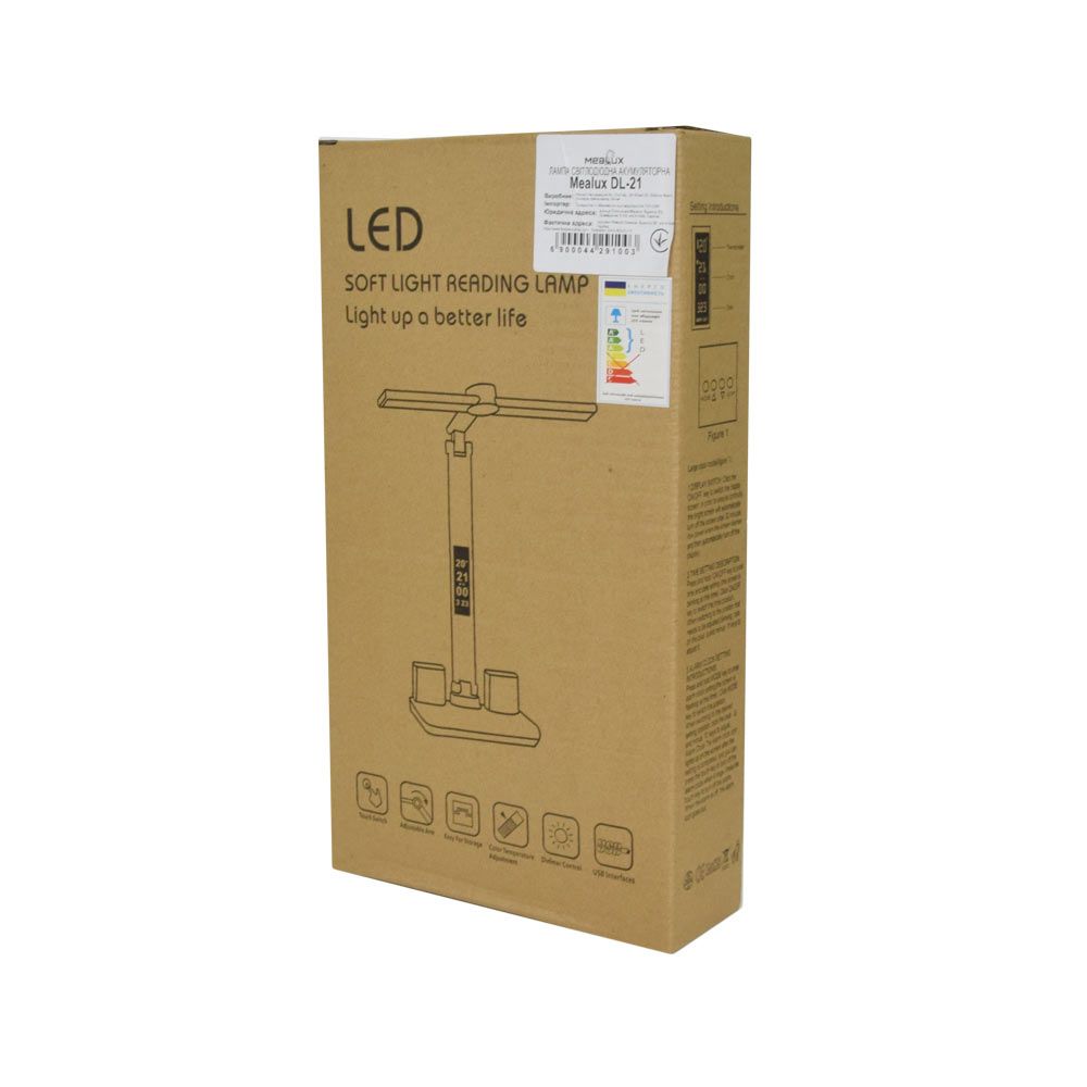 Mealux DL-21 – акумуляторна світлодіодна настільна лампа з сенсорним керуванням. Три режими освітлення (холодний, теплий, комбінований), регулювання яскравості, тримач для смартфона, підставка для ручок, цифровий годинник. Вбудований акумулятор 1800 мА·год, зарядка через microUSB. Компактна і зручна для роботи та навчання.