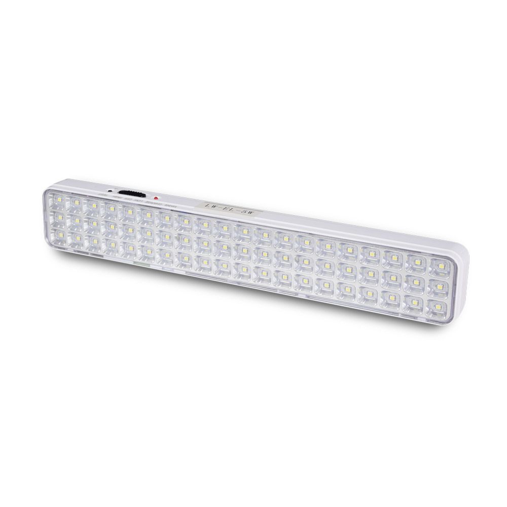 LED аварійний світильник на акумуляторі. Потужність лампи: 5Вт. Світлова температура 6500K (білий холодний). Час роботи: 3 години. Час заряду 6 годин. Акумулятор: Li-ion 3.7В, 2000мА*год. Живлення: AC110-240В. Розміри: 344 х 56 х 30 мм.