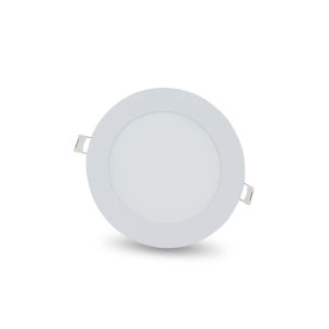 Потужність: 6 Вт. Спосіб монтажу: вбудований. Напруга живлення: AC 85-265 В. Колірна температура: 6500К. Світловий потік: 380 люмен. Ресурс: 50 000 годин. Індекс передавання кольору, Ra (CRI): > 70. Ступінь захисту: IP20. Форма: коло. Матеріал корпусу: алюміній. Колір: білий. Розміри: ⌀120 x 23 мм. Розмір врізного отвору: ⌀105 мм.