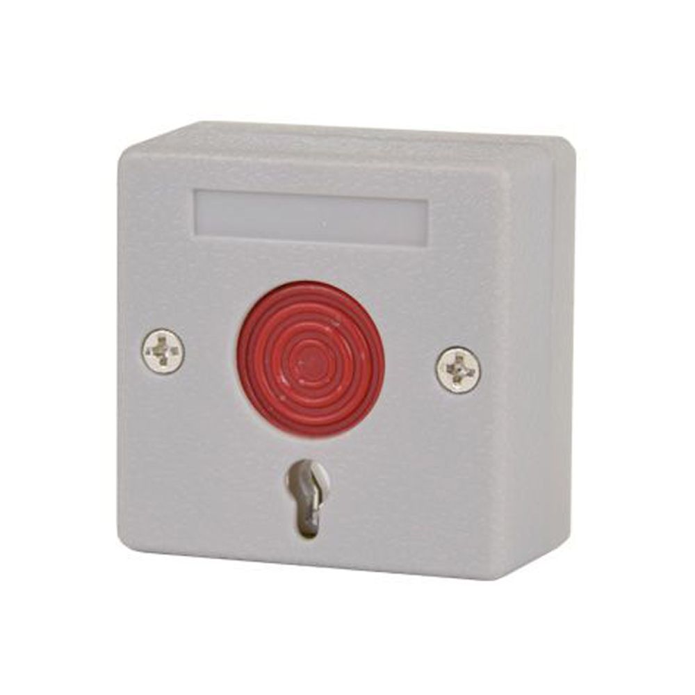 Тривожна кнопка. Тип встановлення: накладний. Лінійні виходи: NO/NC/COM. Максимальний струм комутації: 3A. Матеріал корпусу: ABS пластик. Розміри: 54 x 54 x 27 мм