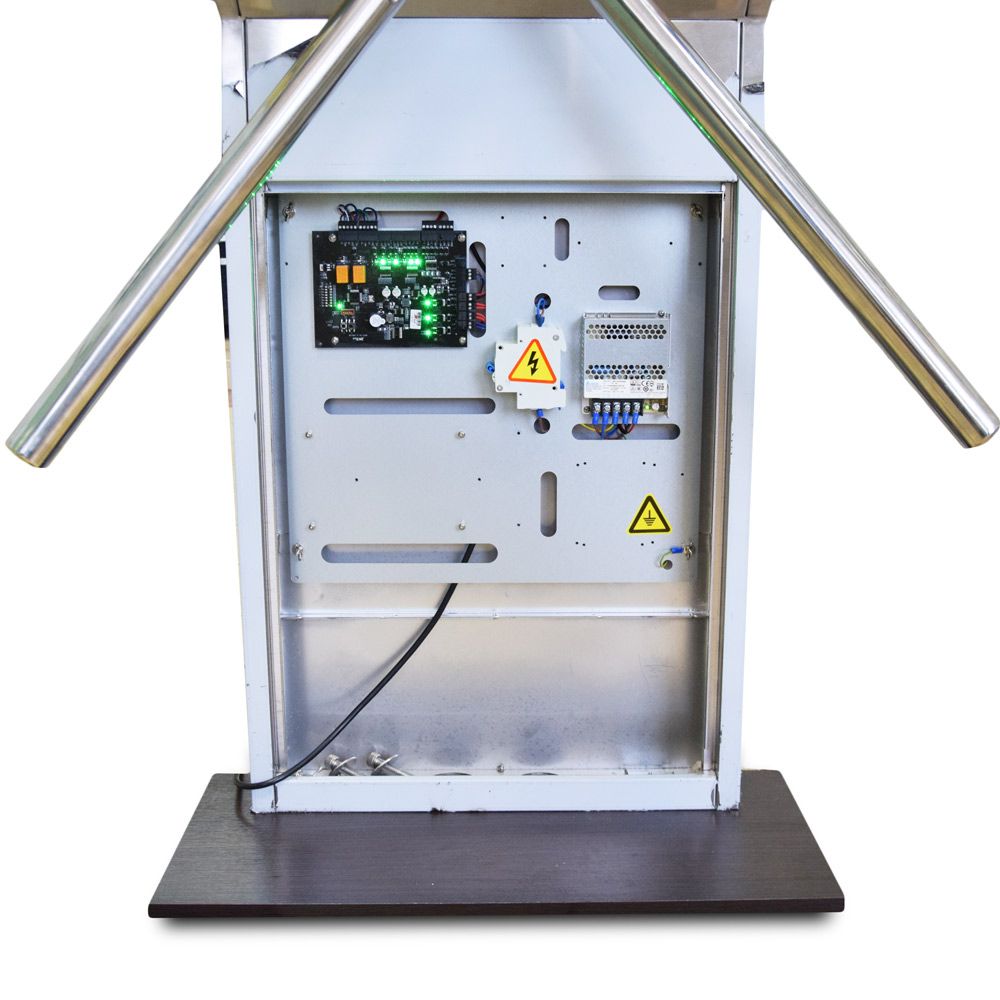 Турнікет-трипод з функцією антипаніка. Пропускна здатність 30 чол/хв. Напрацювання на відмову: 1 млн. проходів. Живлення АС110-240В. Споживання18 Вт. Матеріал: нержавіюча сталь. Розміри: 480 x 280 x 1008 мм.