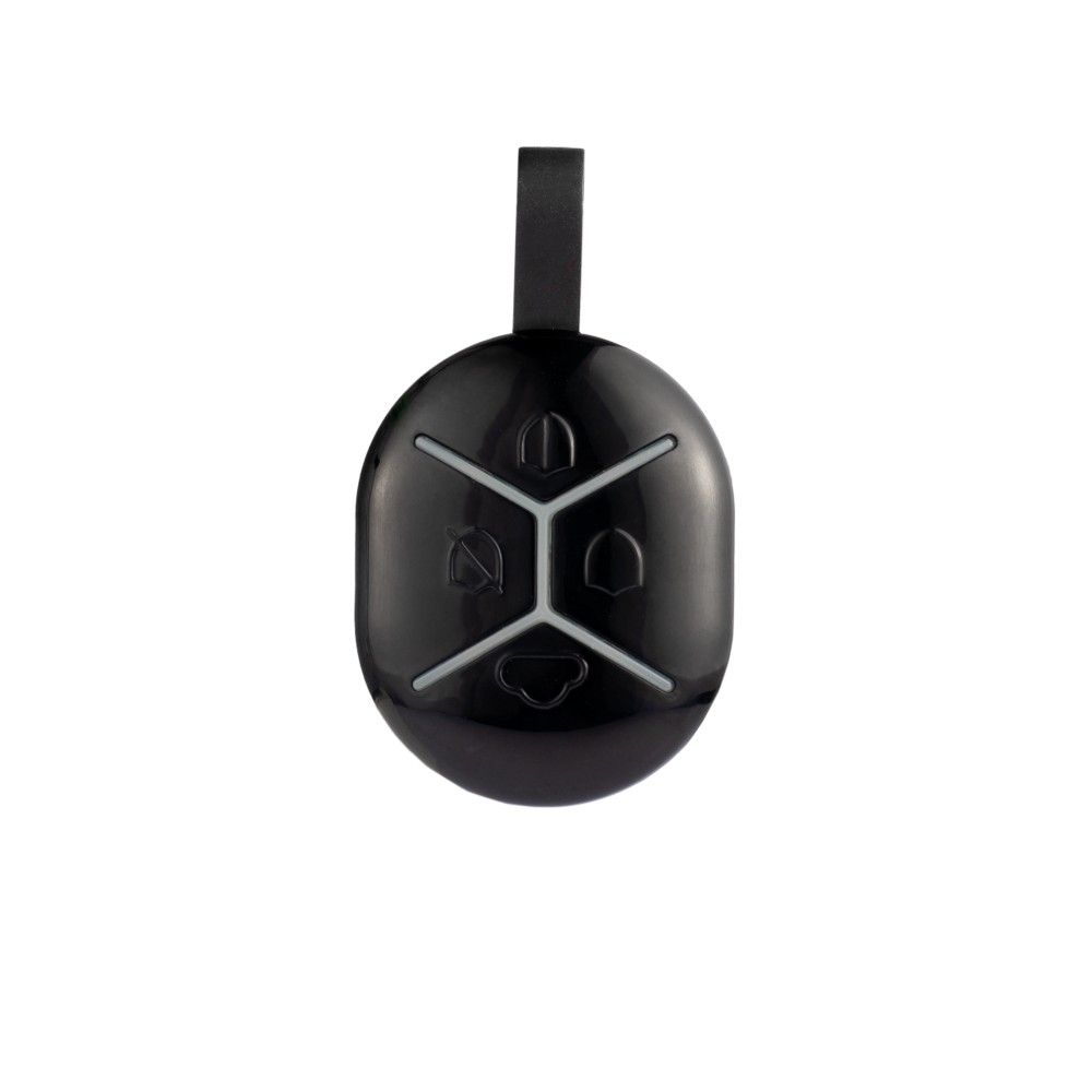 Брелок для керування системою охорони. 4 кнопки керування. Одна програмована кнопка. Радіозв'язок 868 МГц, дальність роботи 800 м, захищена двостороння комунікація, ключ шифрування 256 біт. Світлова індикація. Літієва батарея CR2032 у комплекті, термін служби до 5 років. Робоча температура: -10~+55°C. Розміри: 39х9х57 мм. Вага: 40 г. Колір: чорний або білий