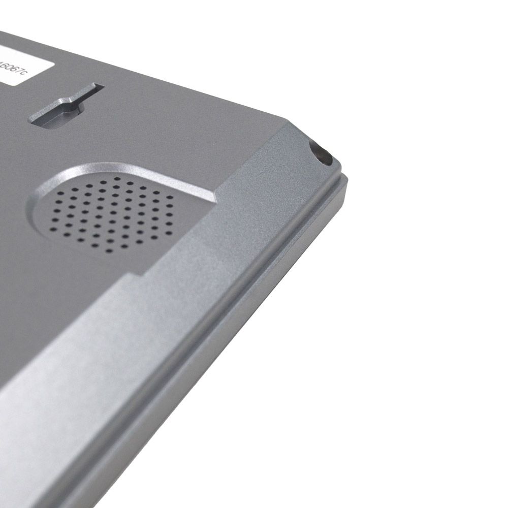 Кольоровий Wi-Fi домофон з IPS екраном 7 дюймів і сенсорними кнопками, під'єднання 2 викличних панелей AHD/TVI/CVI або CVBS, 2 відеокамер AHD/TVI/CVI з роздільною здатністю до 2Мп або CVBS, 2 датчиків тривоги і 1 додаткового монітора (телевізора), інтерком на 6 відеодомофонів. Розмова за гучним зв'язком. З'єднання з панеллю виклику 4-провідне. Слот microSD до 32 ГБ, живлення 100-240V, споживання 700 mA, у режимі очікування 300 mA. Корпус чорного кольору. Розміри 190 x 127 x 22 мм.