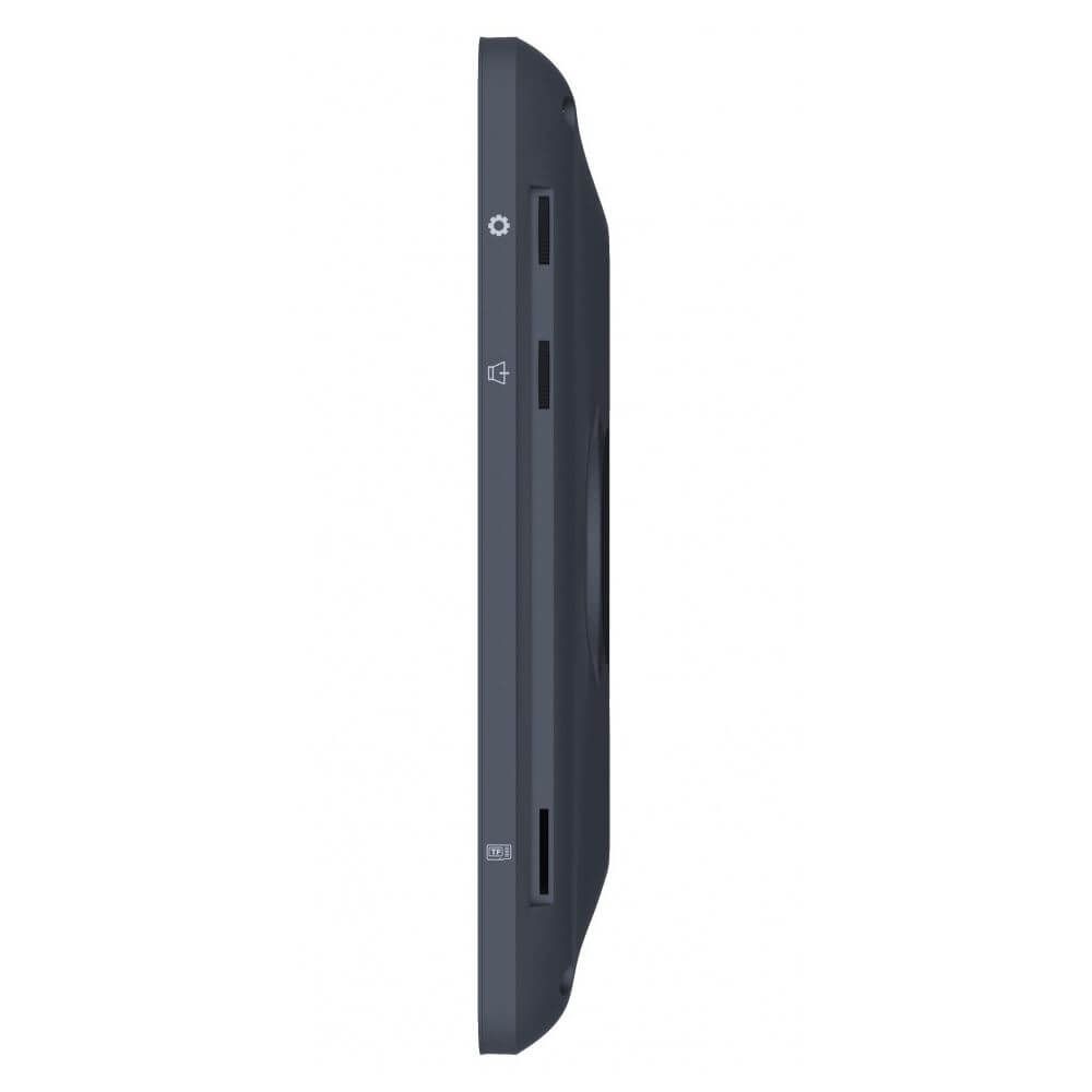 Кольоровий домофон з TFT екраном 7 дюймів, сенсорні кнопки керування, підключення 2 панелей виклику AHD/TVI/CVI або CVBS, 2 відеокамер AHD/TVI/CVI з роздільною здатністю до 2Мп або CVBS, інтерком на 3 відеодомофона. Запис за рухом з 1 каналу. Розмова через гучний зв'язок. З'єднання з панеллю виклику 4-дротове. Слот microSD до 64 ГБ, живлення AC 100-240 В. Корпус графітового кольору. Розміри 193 x 123 x 18 мм