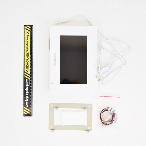 Кольоровий монітор із сенсорним IPS екраном 7 дюймів, під'єднання 2 AHD/CVBS викличних панелей і 2 AHD відеокамер. Розмова гучним зв'язком, є інтерком на 6 відеодомофонів. З'єднання з панеллю виклику 4 дротове. Вбудований блок живлення. Живлення 100-240В, споживання 12W, в режимі очікування 5W. Корпус білого кольору. Розміри 222 х 154 х 15 мм (без кронштейна). Функція переадресації виклику на смартфон, не працює.