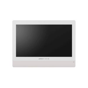 Кольоровий домофон з FullHD 9-дюймовим сенсорним екраном та IPS матрицею. Інтернет WiFi 2.4Ghz, LAN. Підключення 2 відеопанелей, 2 відеокамер, 2 датчиків тривоги NO / NC входи. Розмова по гучному зв'язку, є інтерком на 4 відеодомофони. З'єднання з панеллю виклику 4-дротове. Є відеоаналітика – детекція руху по 4 відеоканалах. Підтримка карт пам'яті microSD до 128 Гб. Живлення 220В AC. Роз'єм для подачі зовнішнього живлення 12В (1.2А) DC, споживання 600mA, в режимі очікування 250mA. Колір корпусу білий + срібло. Розміри 224×163×23 мм.