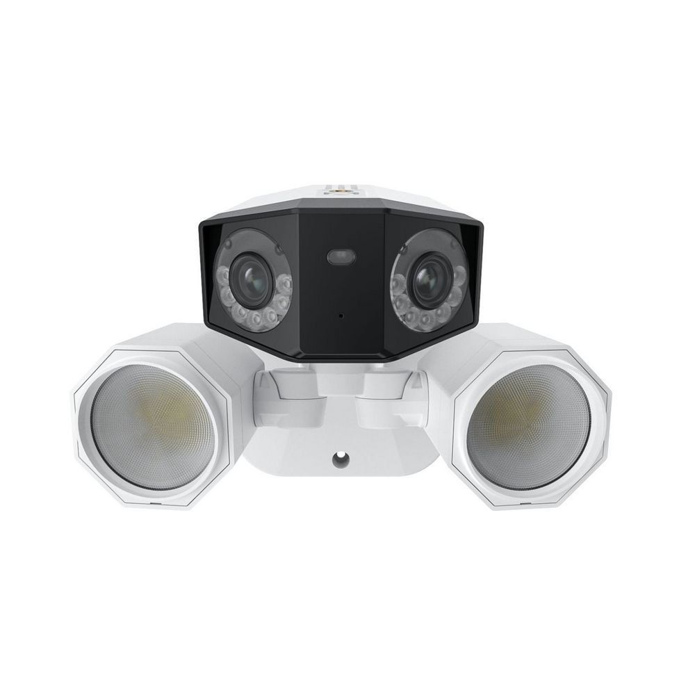 Панорамна IP-камера з подвійним об'єктивом та прожекторами. Роздільна здатність: 8Мп (4608х1728) 20 к/сек. Кут огляду по горизонталі 180°. ІЧ-підсвічування до 30 м. Прожектор: 2 x 15 Вт 1800 люмен. Інтерфейс підключення LAN (RJ-45). Підтримка PoE 802.3at. Слот для картки пам'яті до 256 Гб. Двосторонній аудіозв'язок: вбудовані мікрофон та динамік. Виявлення людини, транспортного засобу, домашніх тварин. Детектор руху, налаштування області інтересів (ROI). Водонепроникність IP66.