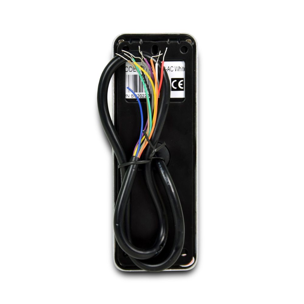 Кольорова накладна відеопанель білого кольору з вбудованою клавіатурою і зчитувачем Mifare (пам'ять на 200 користувачів), з камерою з роздільною здатністю Full HD 1080Р, 720Р, CVBS, кут огляду 115°. 4-дротове підключення до домофону. Підключення всіх типів електрозамків (NO/NC). Робоча температура -30..+50°С. Живлення DC12V. Розмір 130*45*18мм.