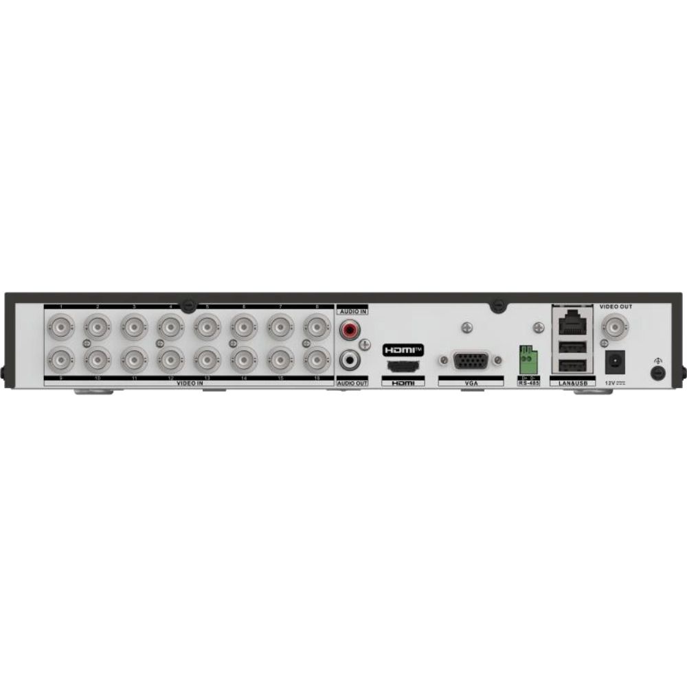 16-канальний ACUSENSE з аналітикою виявлення руху 2.0 для аналогових каналів, перетин лінії та вторгнення (8 каналів). Відеостандарт: HDTVI / AHD / CVBS / IP (+8); Стиснення: H.265 Pro+ / H.265 Pro / H.265 / H.264+ / H.264 ; Запис: 4 MP lite,1080p 15к/с; 720p/WD1/4CIF/VGA/CIF 25 к/с; Аудіо: 1 RCA / 1 RCA (передача коаксіалом); Відеовиходи: HDMI, VGA, CVBS; Інтерфейси: RS-485, 1x USB2.0, 2x USB3.0, RJ-45 10/100/1000Mб; 1xSATA HDD до 12 ТБ; DC 12В/24Вт без HDD, 320х240х48 мм