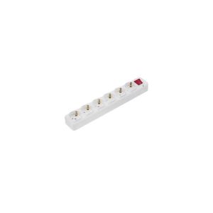 Колодка на 6 гнізд із заземленням і вимикачем. Дозволяє підключити 6 приладів до однієї мережі, але потужність навантаження не повинна перевищувати 3600 Вт. Номінальний струм: 16 А. Ступінь захисту: IP20