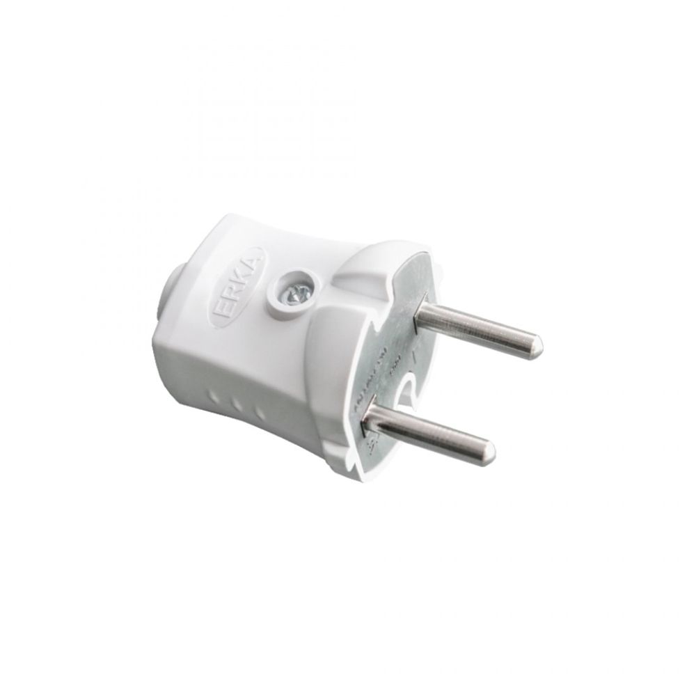 Вилка ERKA 1001 10 А без заземлюючого контакту пряма біла