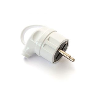 Вилка електрична ERKA 1004 16 А з заземлюючим контактом кутова з ручкою біла. Напруга: 220-240 В. Номінальний струм: 16 А