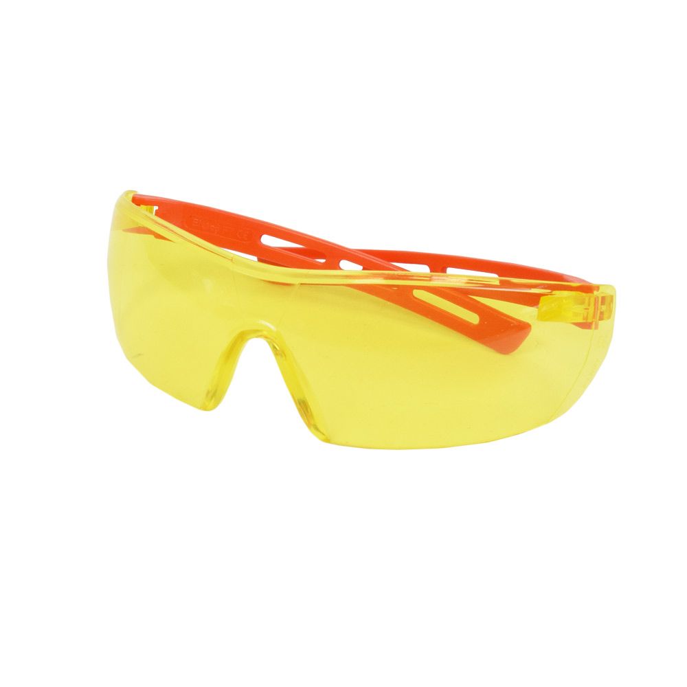 Окуляри захисні ASPECT бурштинові. Оптичний клас лінзи: 1. Матеріал лінзи: полікарбонат. Матеріал дужок: пластик. Маркування лінзи: 2-1,2IFT СЄ. Поглинання ультрафіолетового випромінювання: 99%